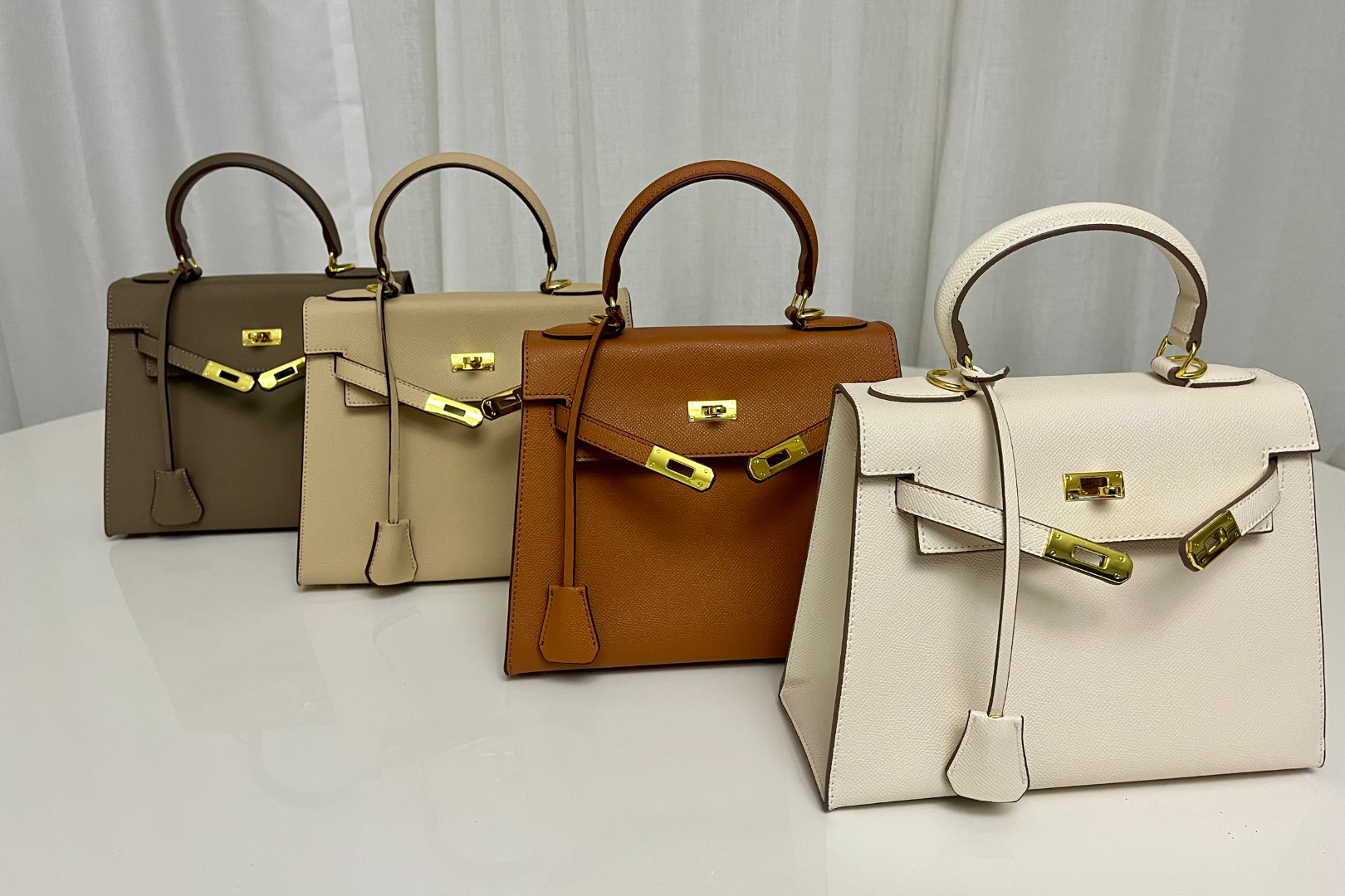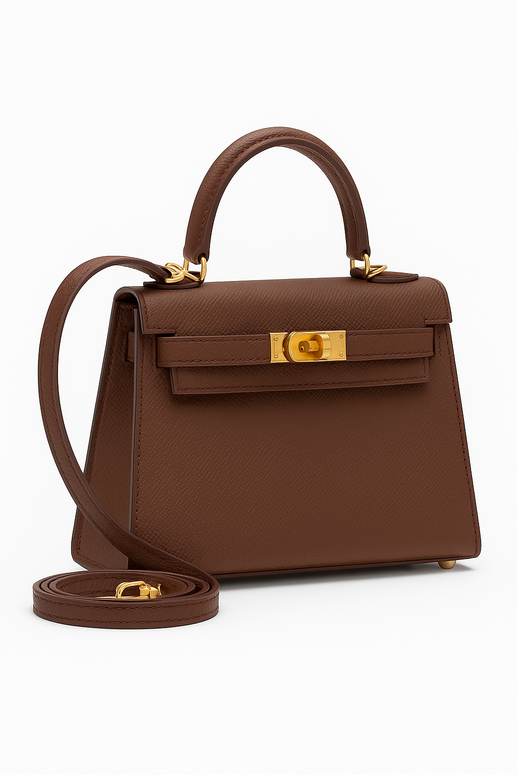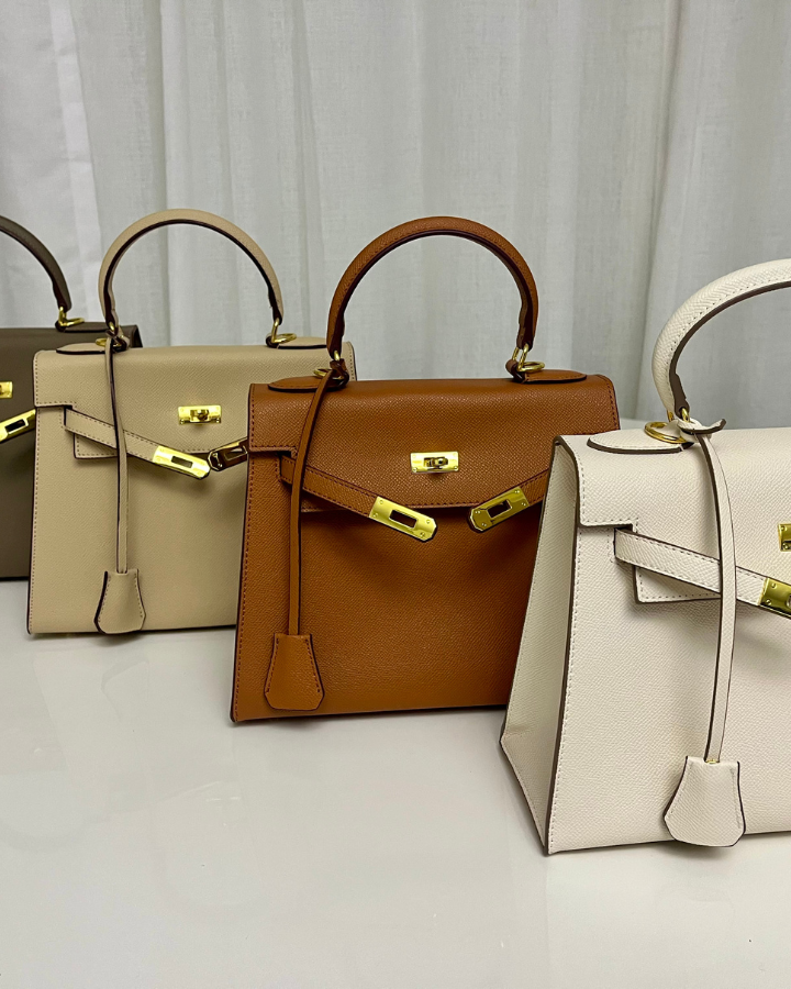 Le Kelly CALIYA™ réinvente le classique à la perfection. Sa silhouette rigide, son cuir grainé et ses finitions dorées ou argentées incarnent l’élégance absolue. Un design qui traverse les saisons sans jamais perdre de sa modernité.